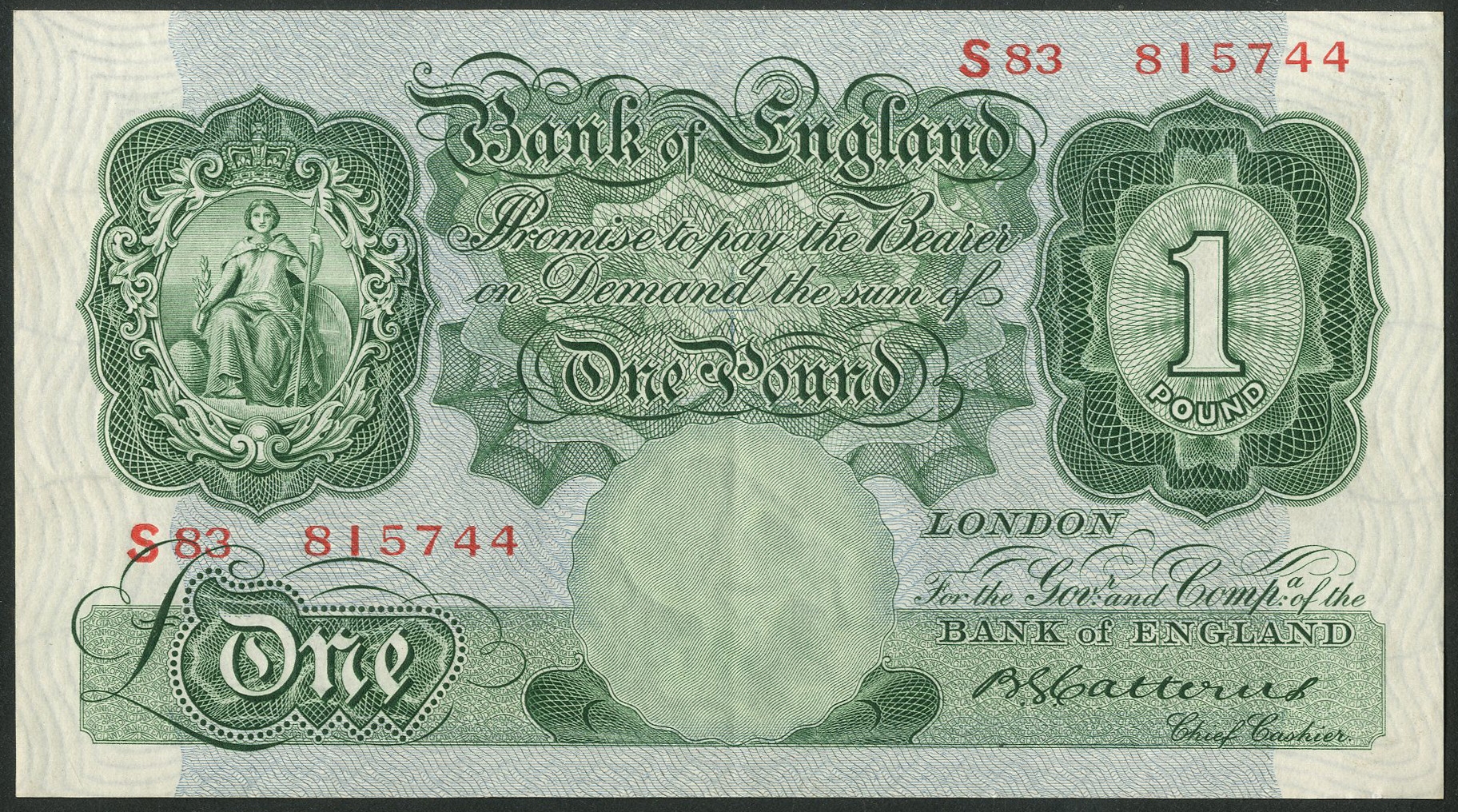 Bank of England, B. G. Catterns, 1 pound, (1930), #S83 815744 (EPM B225). VF-EF.