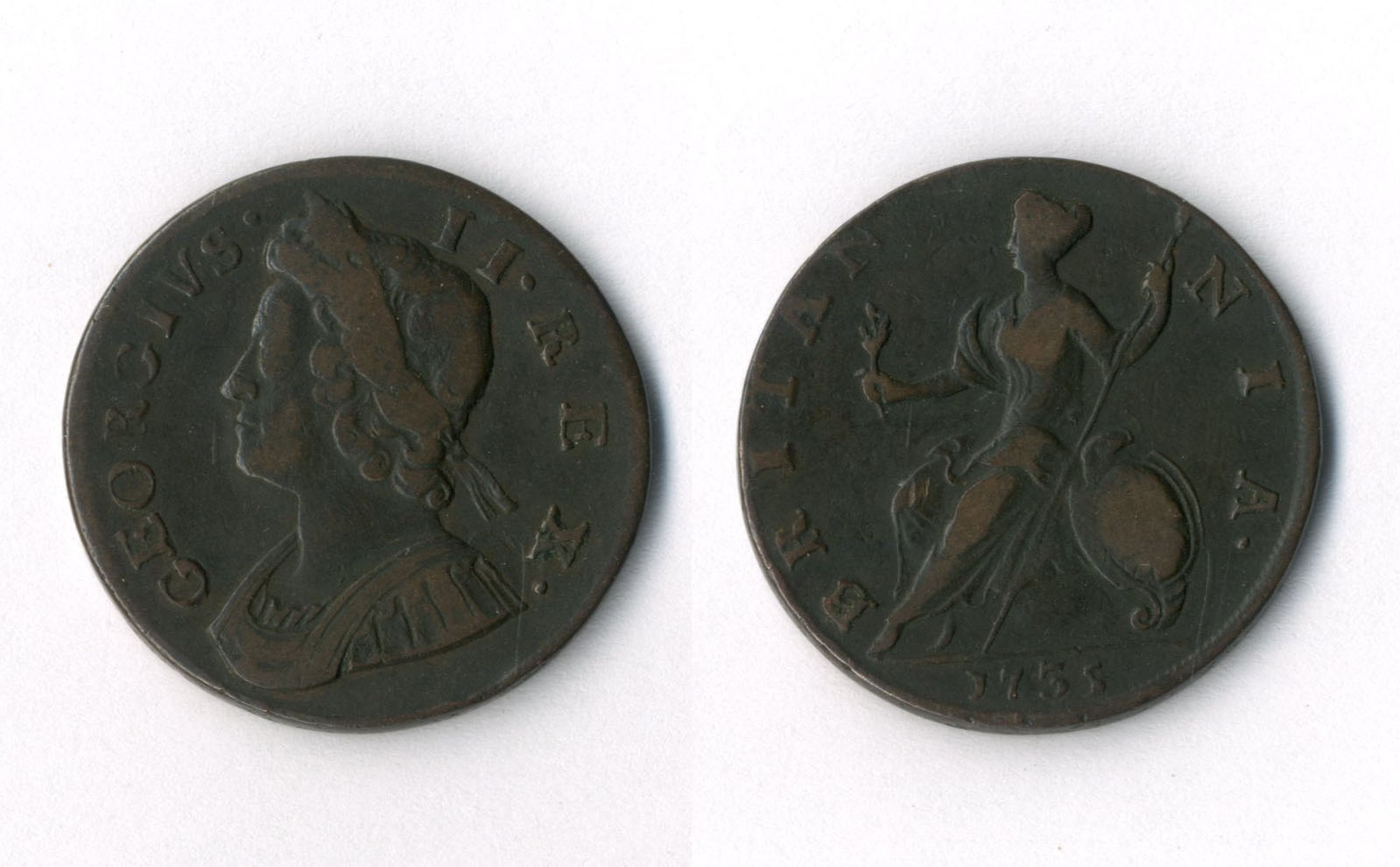 George II: Halfpenny, 1735 (S.3717), F-VF.