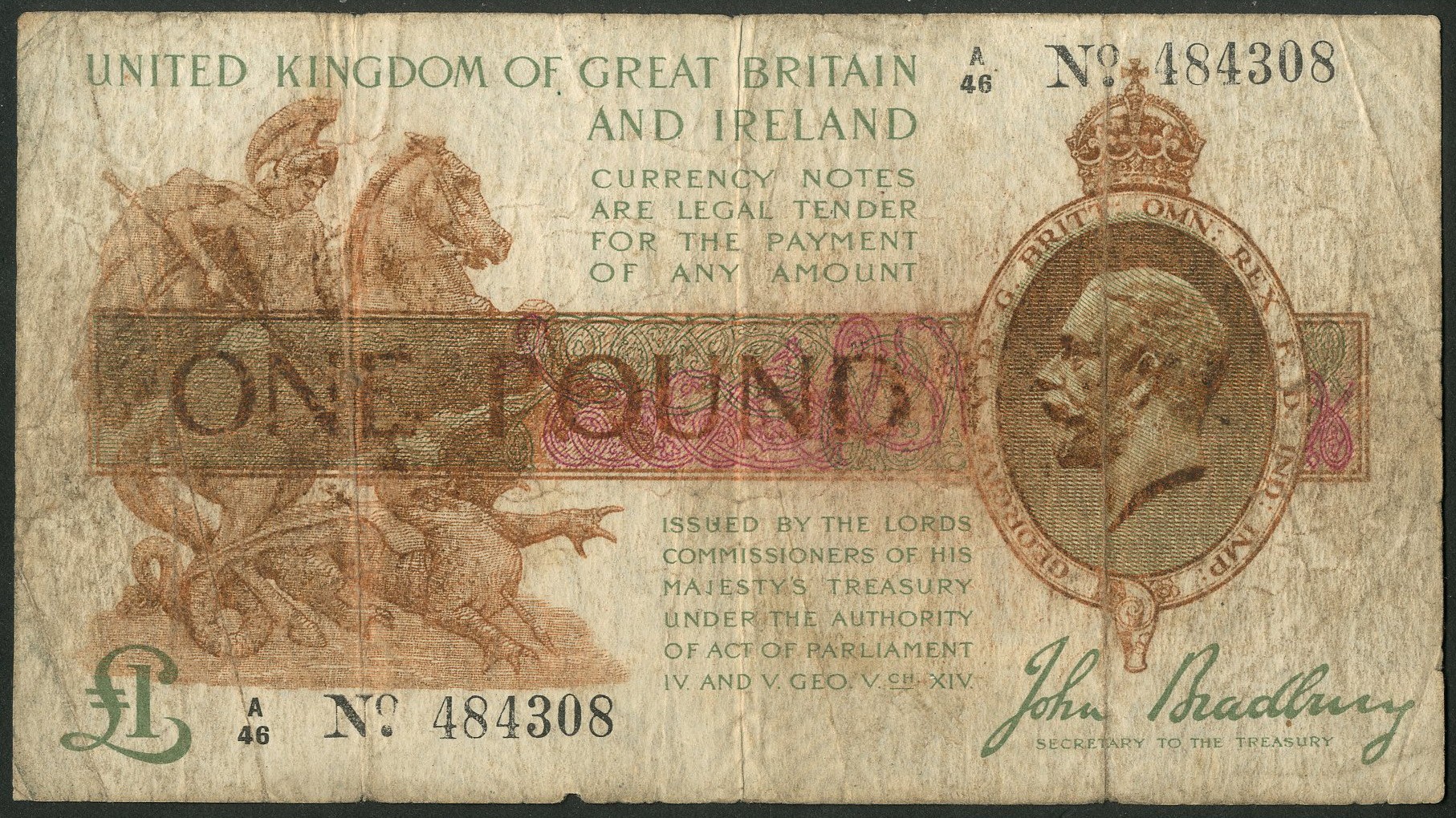 Treasury, John Bradbury, Third issue, (1917), first series, #A/46 484308 (EPM T16). VG.