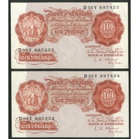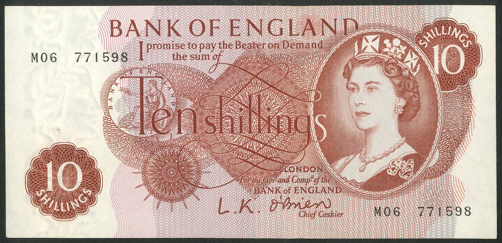 Bank of England, L. K. O'Brien, 10 shillings, (1961), replacement, #M06 771598 (EPM B287). AUNC.