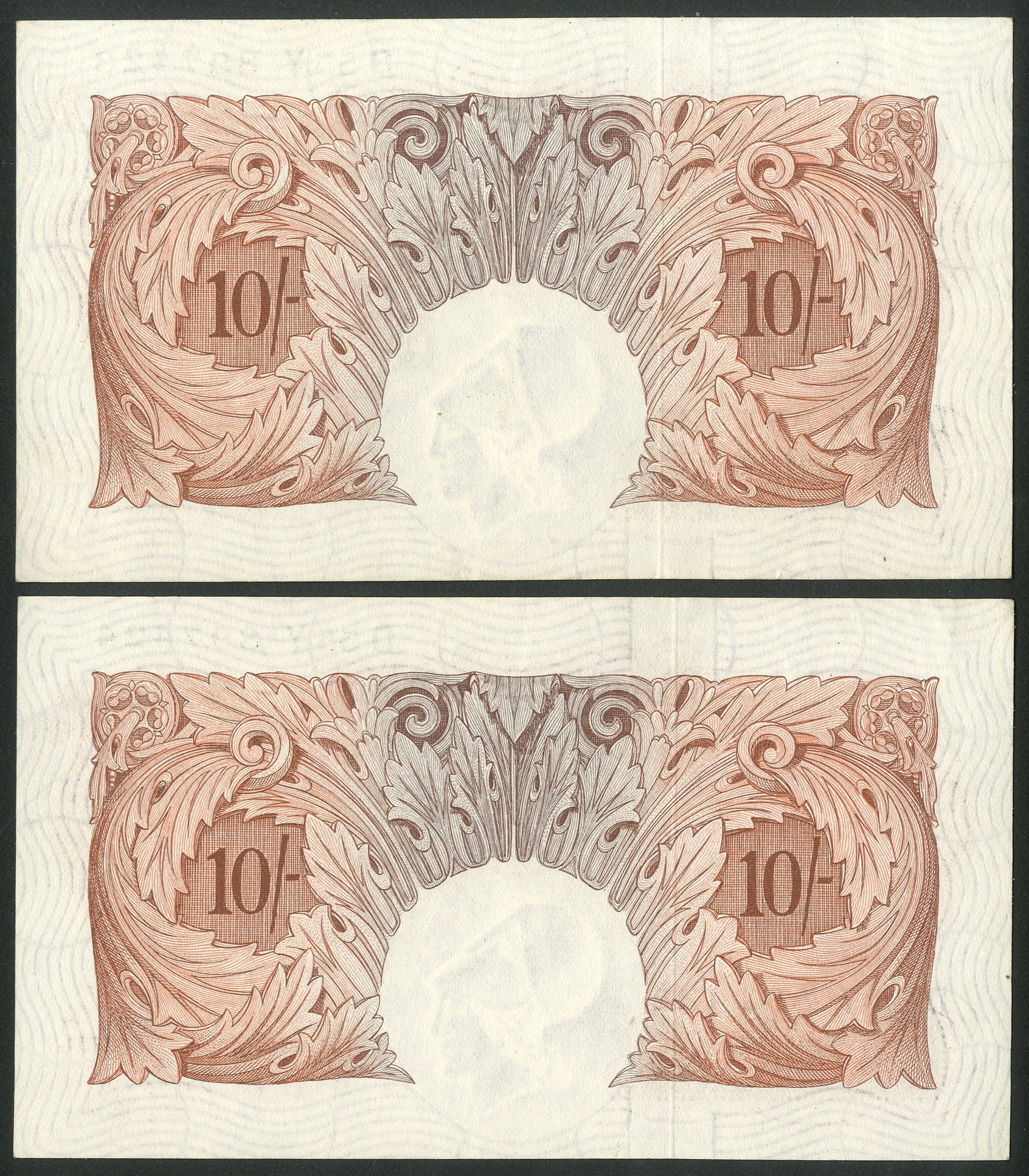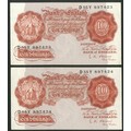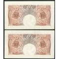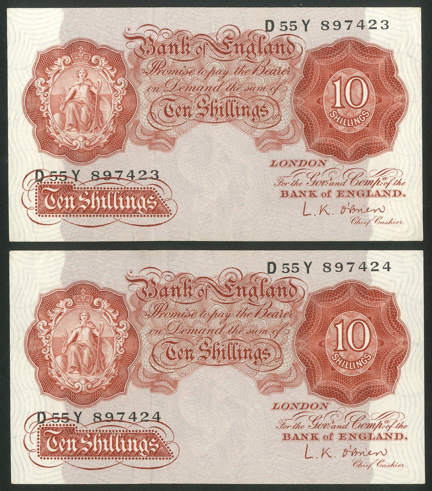 Bank of England, L. K. O'Brien, 10 shillings, (1955), a consecutive pair, #D55Y 897423 and 424 (EPM B271). Signs of handling, AUNC (2).